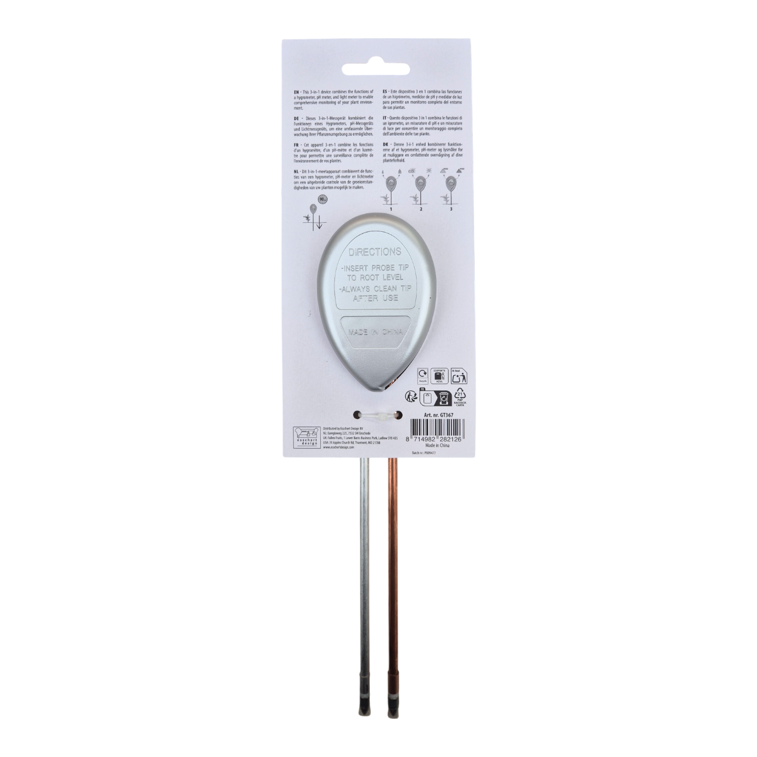 Verbessern Sie Ihre Pflanzenpflege mit diesem 3-in-1-Messgerät. Ein kompaktes und vielseitiges Werkzeug, das pH-Wert, Bodenfeuchtigkeit und Lichtintensität misst. Präzise pH-Wert-Messungen helfen Ihnen, den Säuregrad des Bodens zu verstehen und fundierte Entscheidungen für optimales Pflanzenwachstum zu treffen. Der Feuchtigkeitssensor misst mühelos die Bodenfeuchtigkeit. Das Lichtmessgerät misst die Sonneneinstrahlung, die Ihre Pflanzen erhalten.