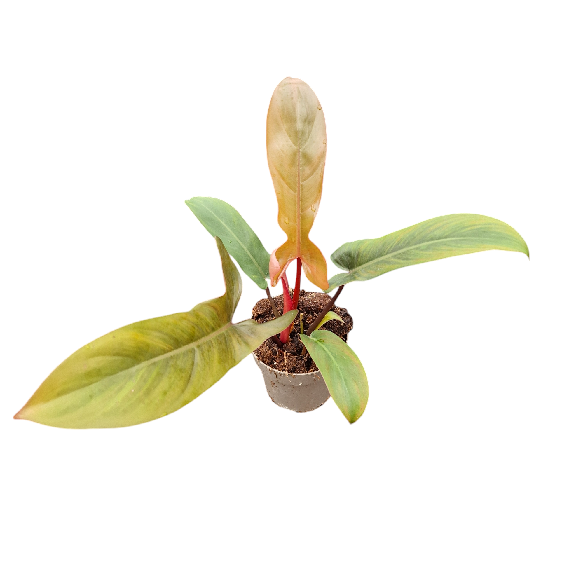 Der Philodendron Florida Bronze ist eine spektakuläre Pflanze, die Ihrem Interieur nicht nur eine exotische Atmosphäre verleiht, sondern auch mit ihrem Farbverlauf fasziniert. Die Blätter dieser tropischen Schönheit wechseln von Grün zu verschiedenen Gelb- und Orangetönen und erzeugen so eine dynamische und einzigartige Farbpalette. Die rosafarbenen Stiele und die feine Maserung machen diese Pflanze zu einem absoluten Hingucker.
