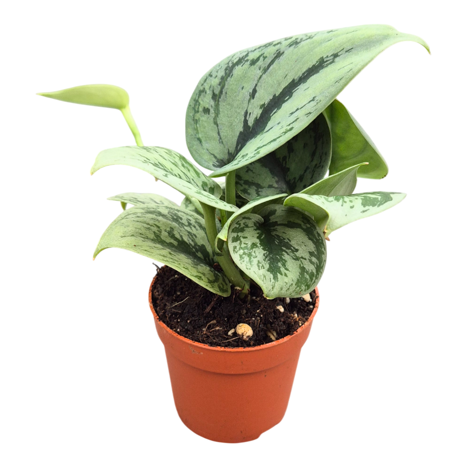 Eine robuste Scindapsus-Sorte mit großen, dunkelgrünen Blättern und dezenten grün-auf-grünen Zeichnungen, die ihr ein imposantes und luxuriöses Aussehen verleiht. Diese widerstandsfähige Kletterpflanze ist pflegeleicht und gedeiht am besten an einem hellen Standort mit indirektem Licht und in leicht feuchter, gut durchlässiger Blumenerde.
