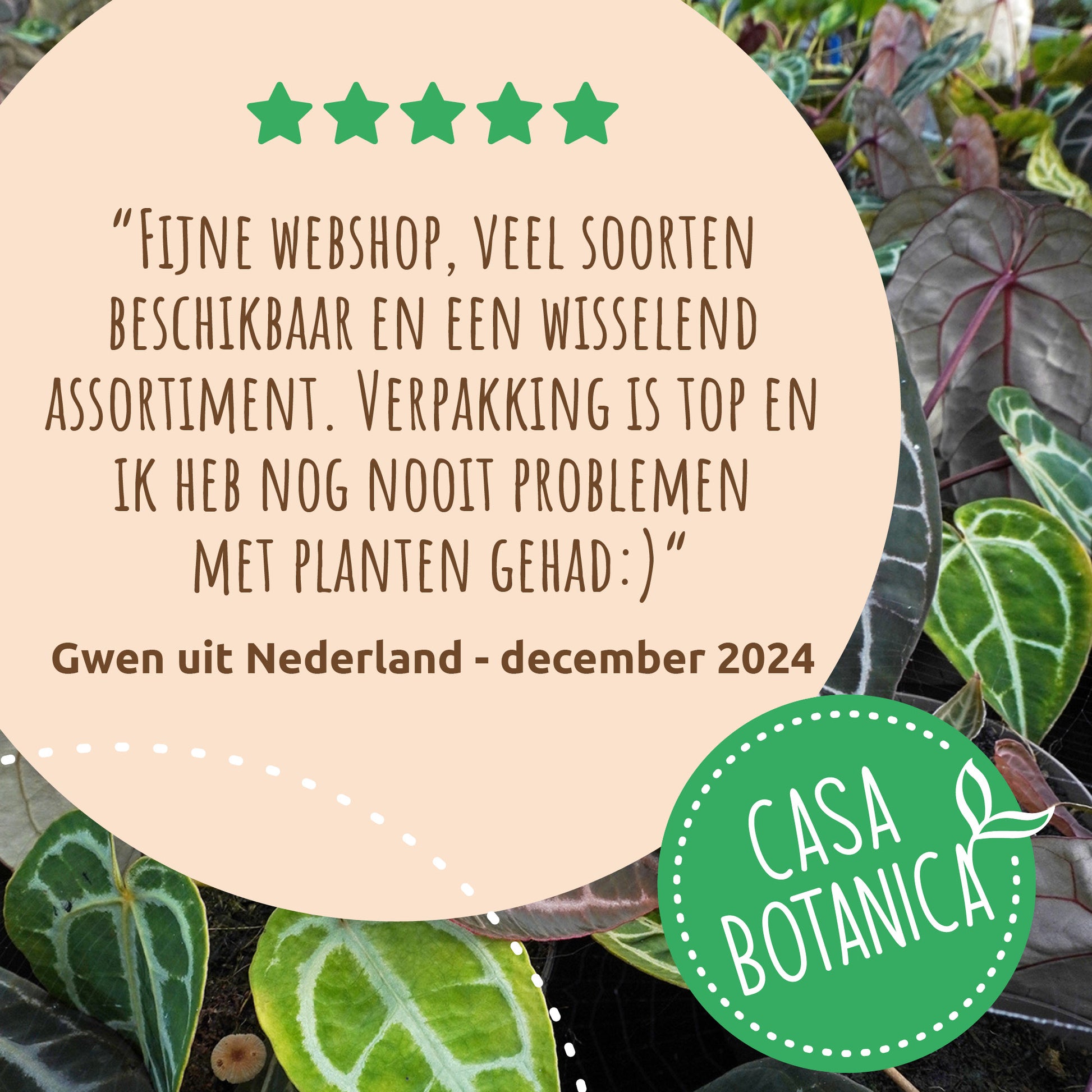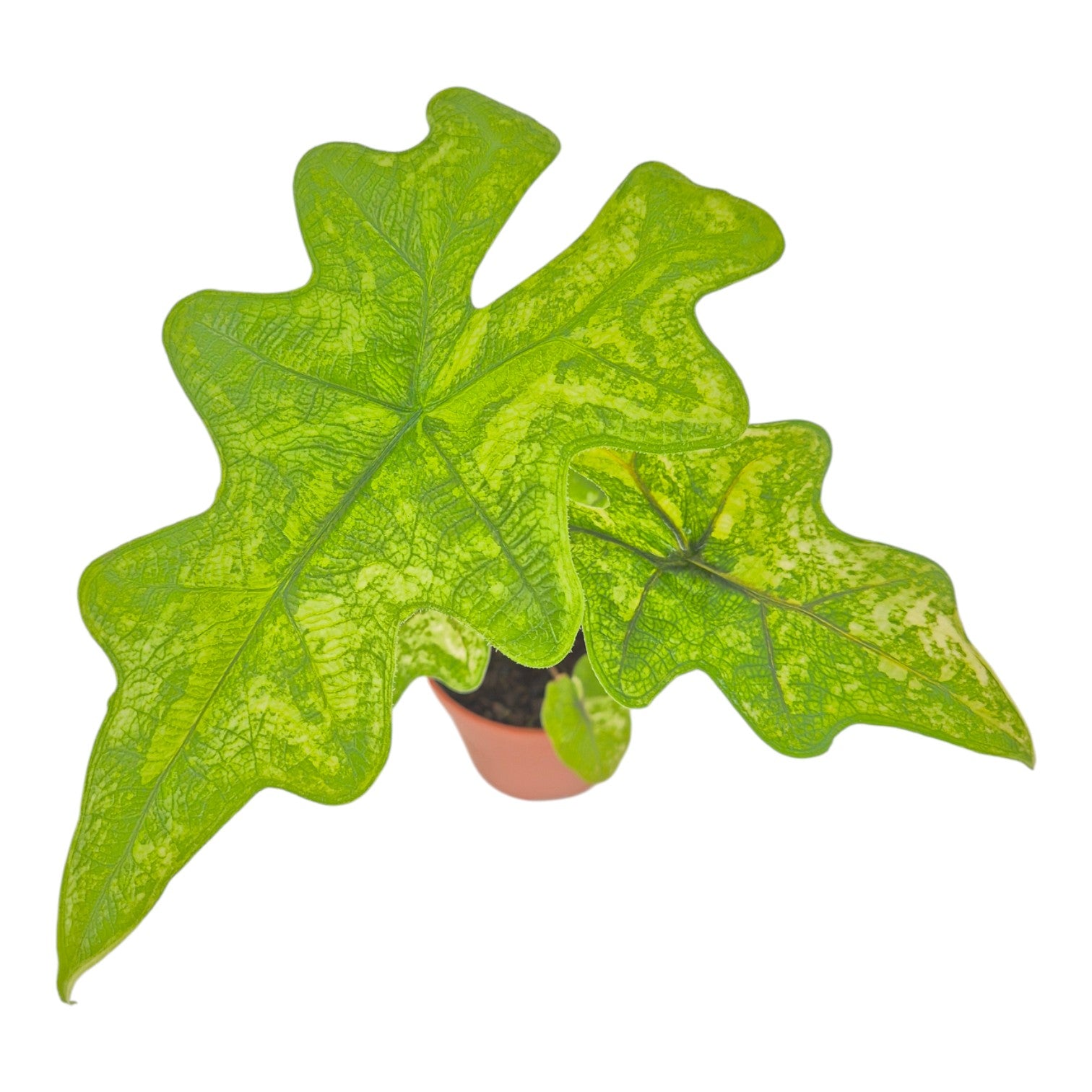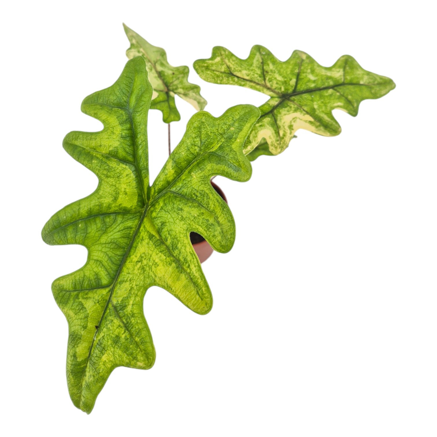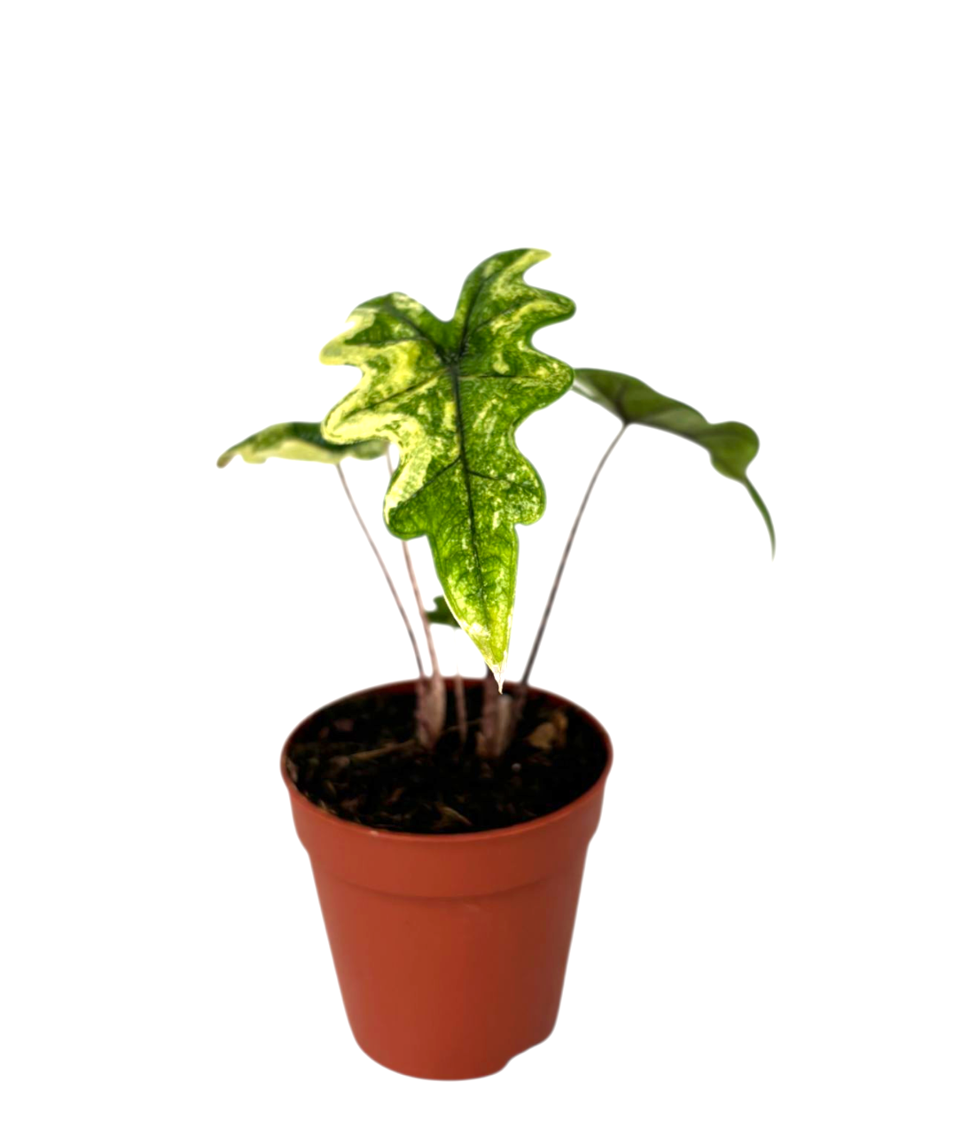 The Alocasia Jacklyn Variegata Mini is an exclusive and rare variety of the beloved Alocasia Jacklyn. This plant is known for its deeply incised leaves with a unique green and white variegation, which gives it an exotic look. Despite the smaller pot size, this mini version retains all the special characteristics of a mature plant. An absolute must-have for collectors and lovers of variegated Alocasias.