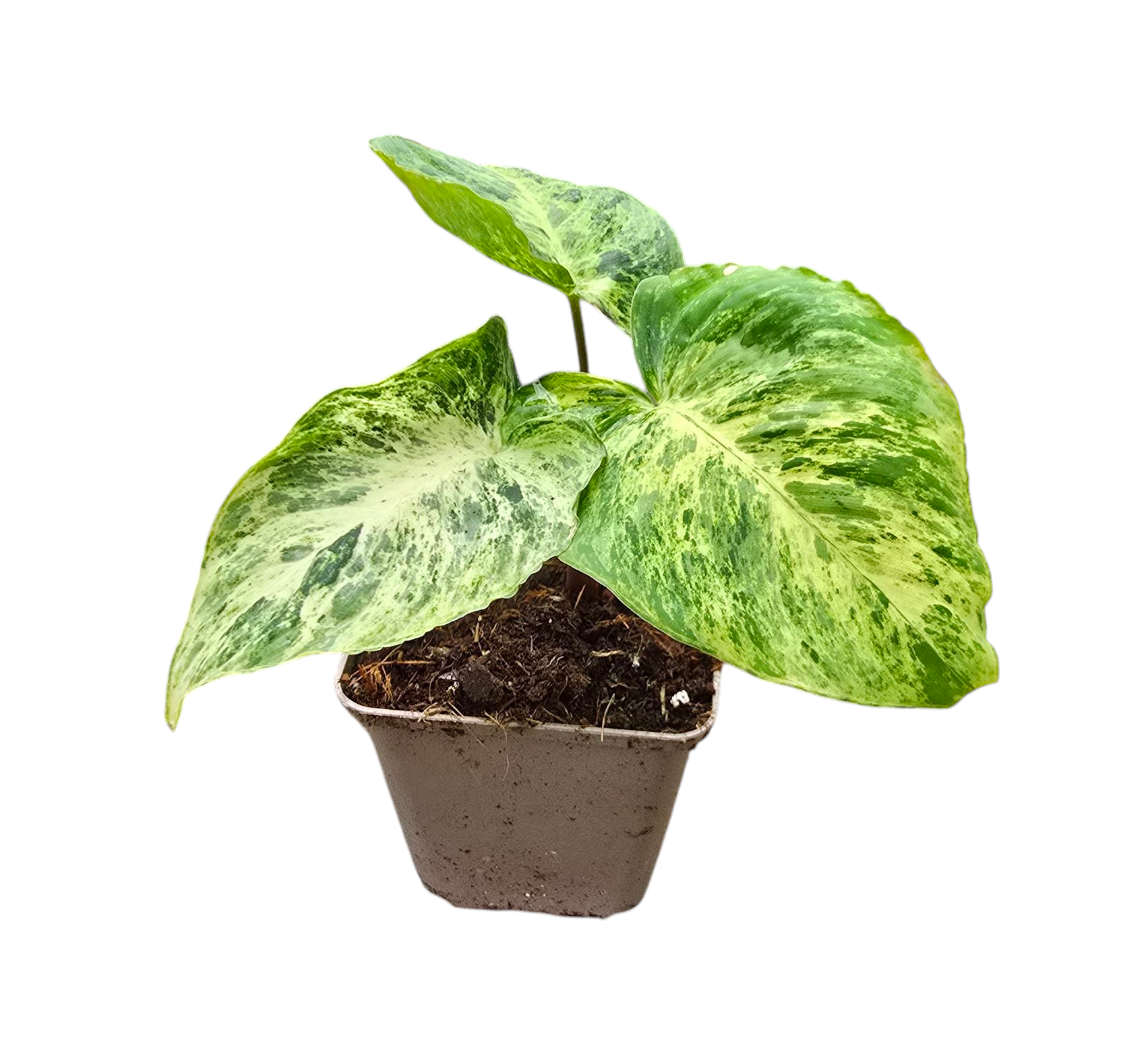 The Homalomena Red Stem Variegata is a beautiful tropical houseplant that immediately draws attention with its striking leaf color and beautiful variegation. This plant is a variety of the Homalomena, famous for its rich green leaves that are beautifully combined with ivory and cream colored spots. What makes the Homalomena Red Stem Variegata truly unique, however, is the striking red color of the stems, which adds an exotic flair to the already lush appearance of the plant.