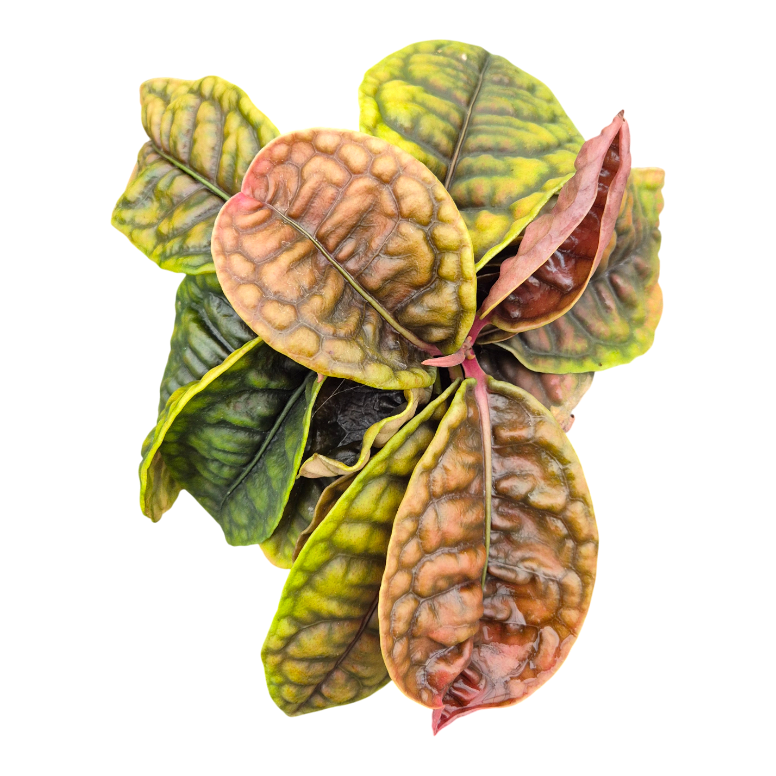 A rare and decorative foliage plant from Southeast Asia, known for its slightly barreled, coarse leaves with beautiful transitions from dark green to lilac along the veins. The stems are often pinkish, adding to its charm.