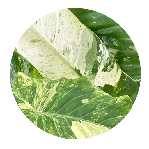 DocBlocks with contrasting veins, very unique finds from Asia, minis, special plugs, variegata plants with beautiful color variations, hanging plants with unique leaf structures. The nursery is a colorful collection of the most exclusive and rare plants.