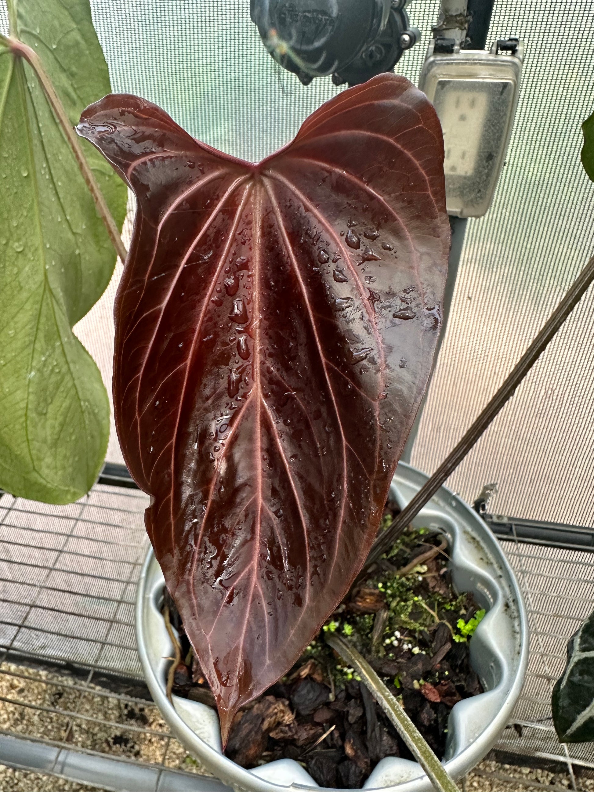 DocBlock Anthurium (Red Velvet Cake® '24' X Dark & Handsome® '9') X Black Widow® '43'