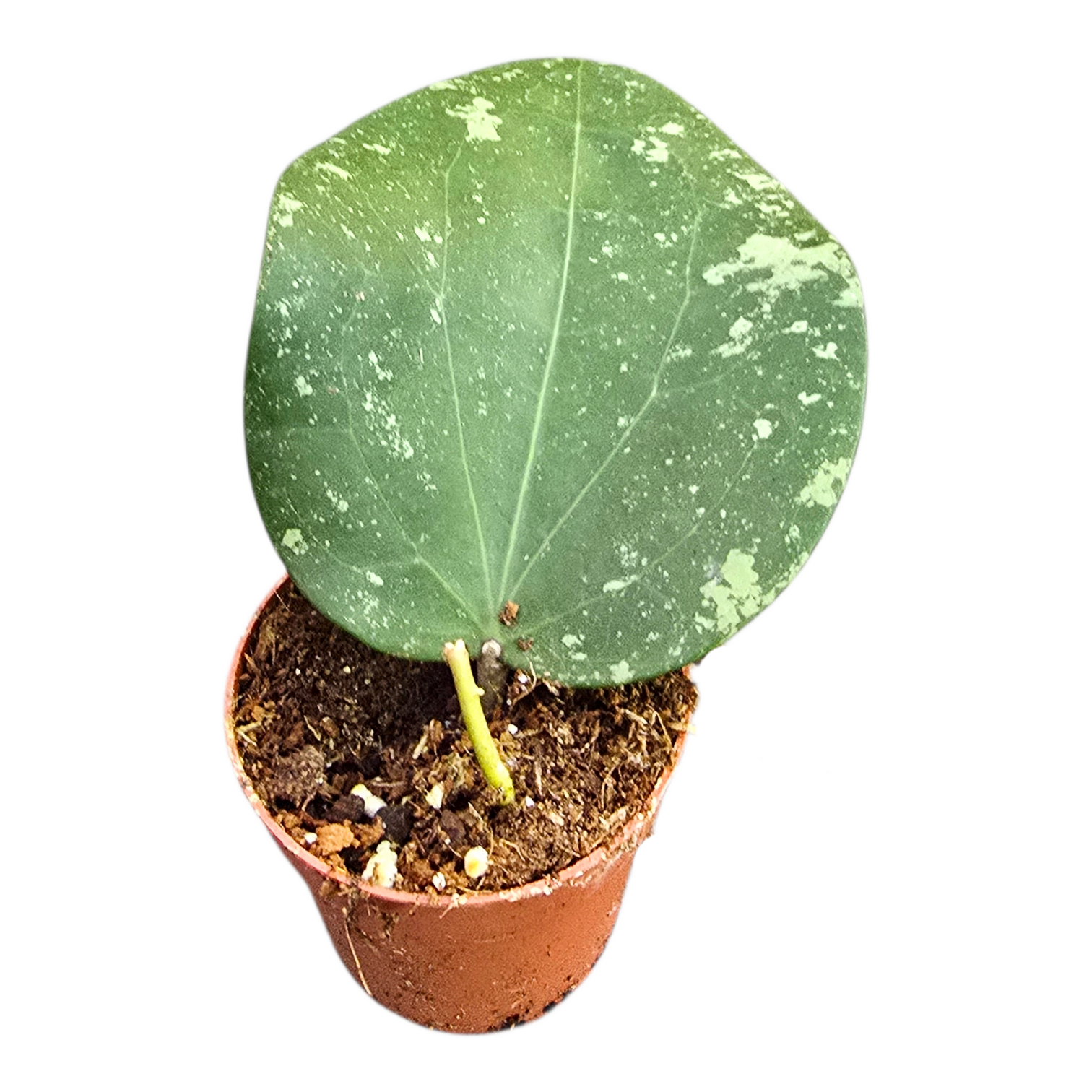 Met haar opvallende, gespikkelde bladeren brengt de Hoya Glabra Splash direct sfeer in huis. Deze plant is makkelijk te verzorgen en groeit gestaag. Ideaal voor iedereen die houdt van een beetje extra flair in de plantenverzameling.
