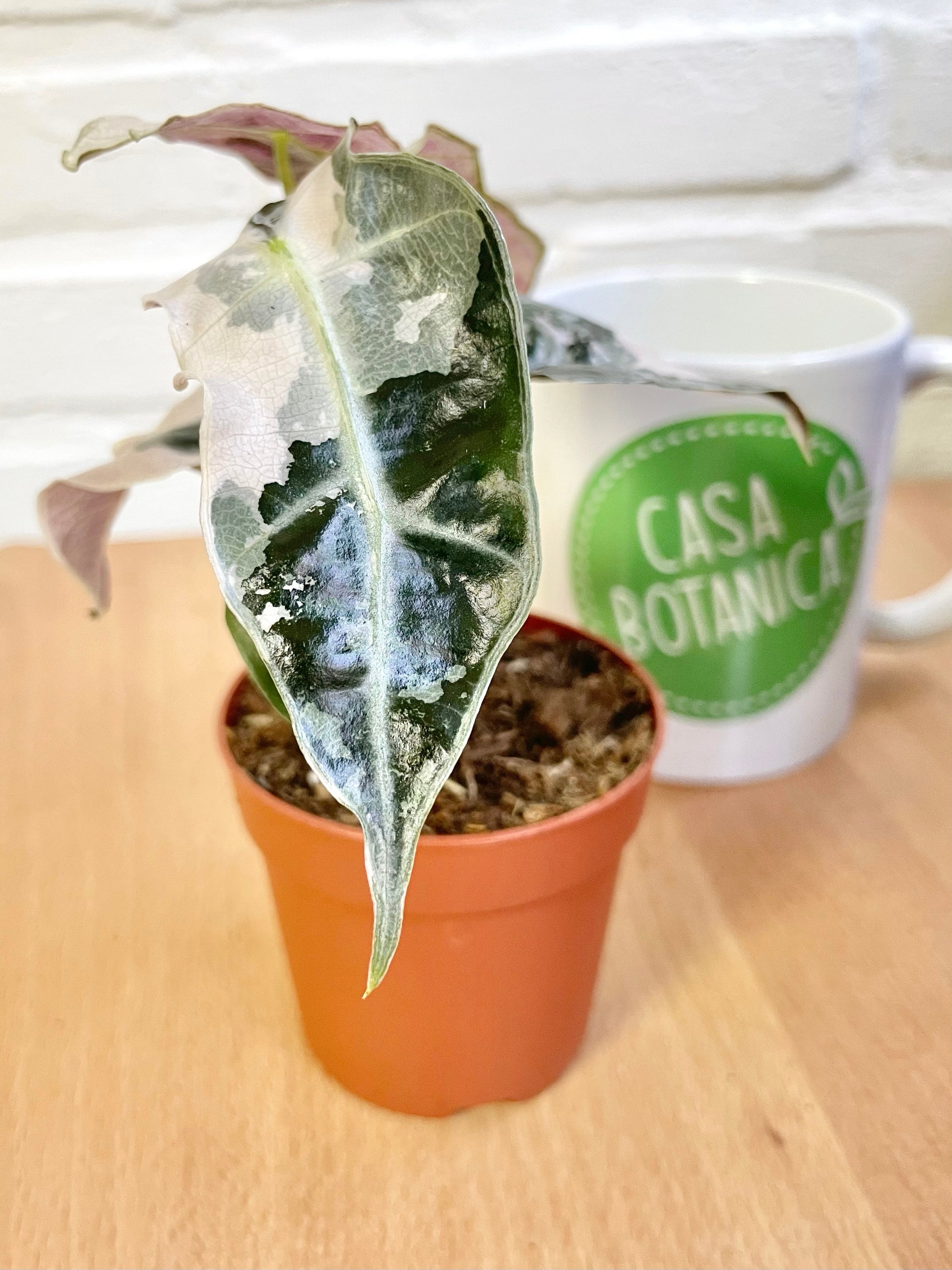 The Alocasia Polly Variegata is a true eye-catcher with its striking, arrow-shaped leaves and beautiful variegation. The fresh green is playfully interspersed with creamy and white accents, making each plant unique. This special Alocasia instantly adds a tropical, luxurious touch to your interior. Place her in a bright spot (out of direct sunlight) and enjoy this exotic beauty in your home!