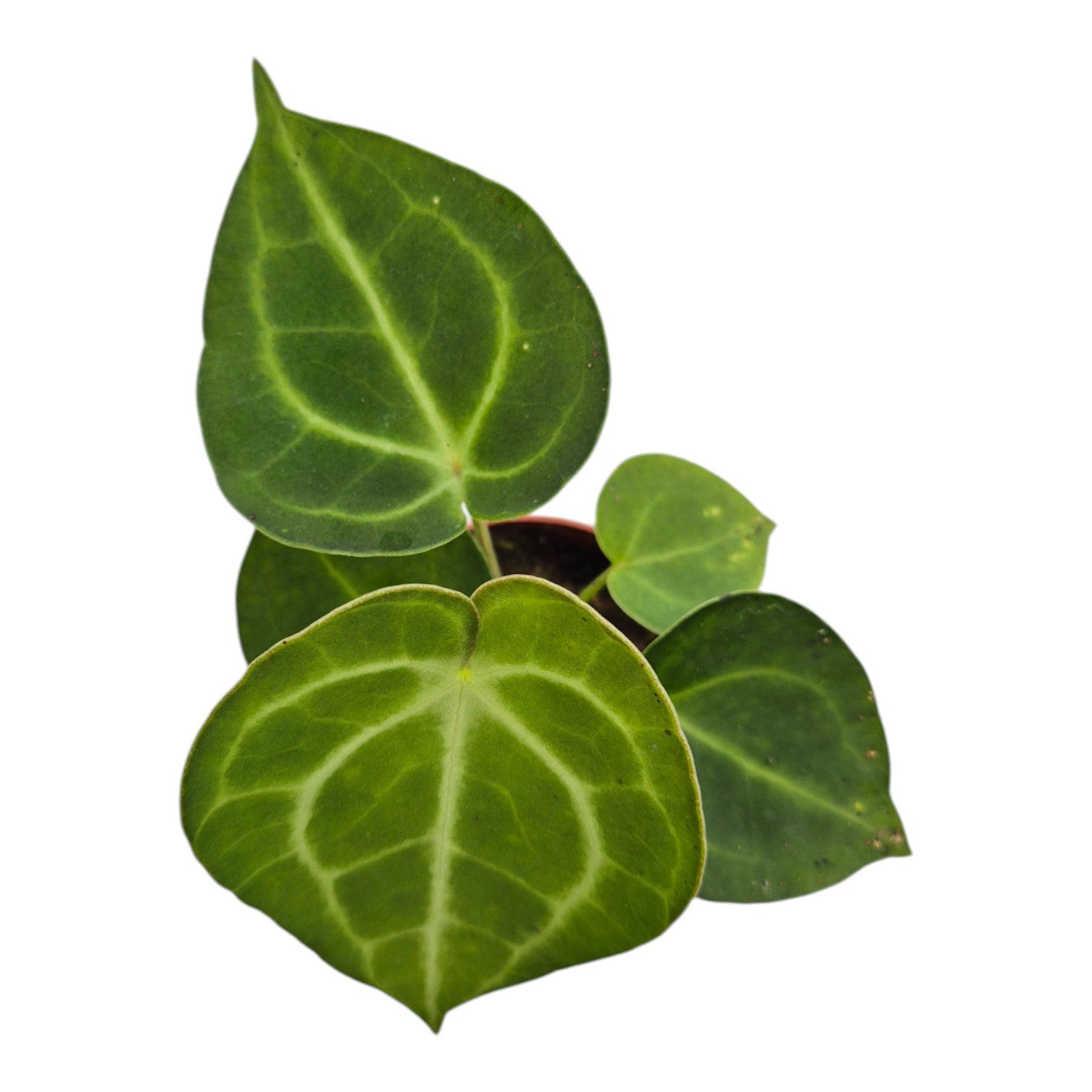 De Anthurium ‘King of Clarinervium Sulanjana’ is een spectaculaire en zeldzame kruising die zijn naam meer dan eer aandoet. Deze plant combineert de diepgroene fluweelachtige bladeren van het klassieke Clarinervium met een krachtigere groei en fijn vertakte, opvallende nerven. De nervatuur steekt helder wit af tegen het donkergroene blad en geeft de plant een haast grafisch karakter.