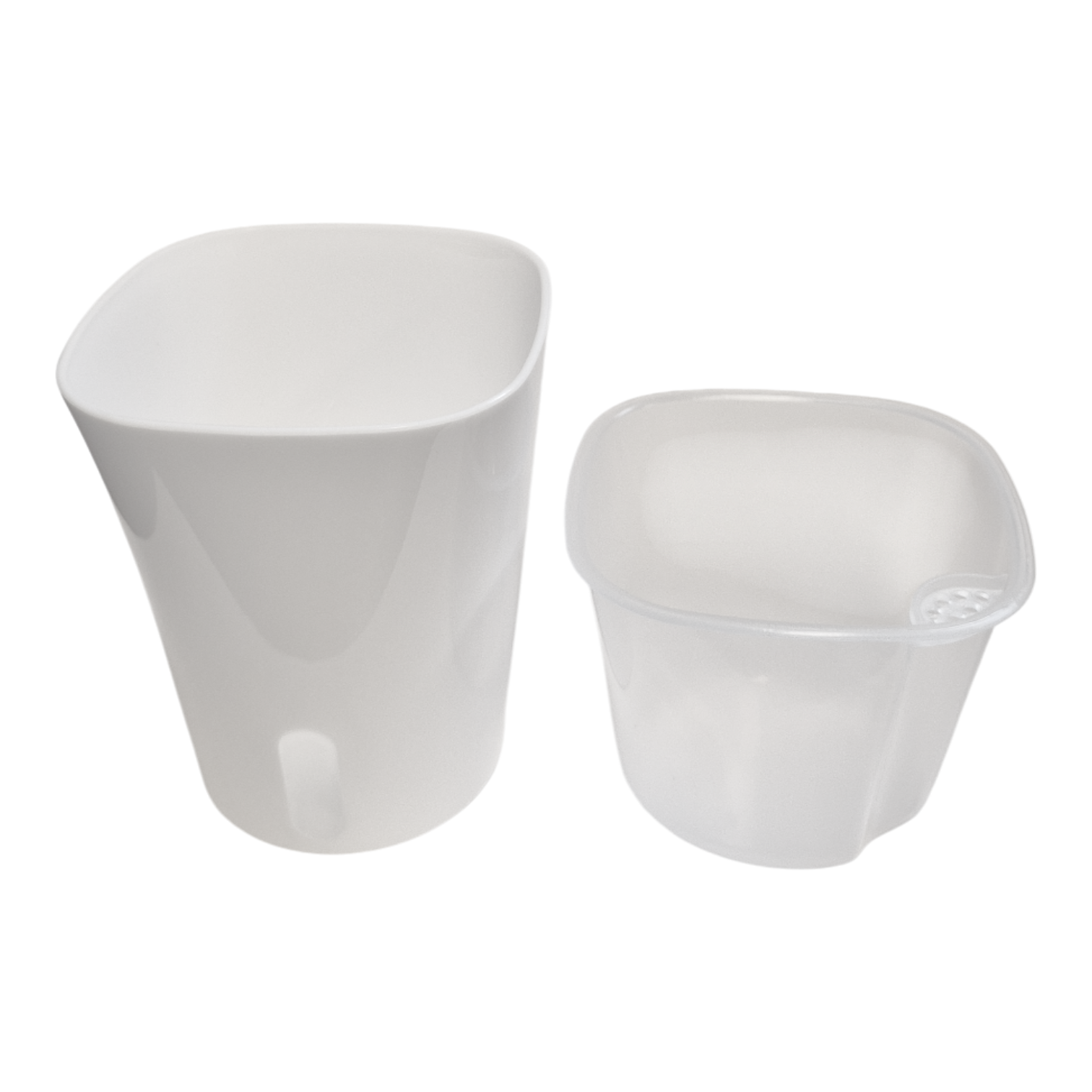 De zelfwaterende kpotten met transparante inzetstukken zijn ontworpen om een constante vochtigheid te bieden en een gezondere wortelontwikkeling voor uw kamerplanten te bevorderen. Het geïntegreerde katoenen lontsysteem zorgt voor een gelijkmatige waterverdeling, terwijl het transparante binneninzetstuk het gemakkelijk maakt om de gezondheid van de wortels te controleren.
